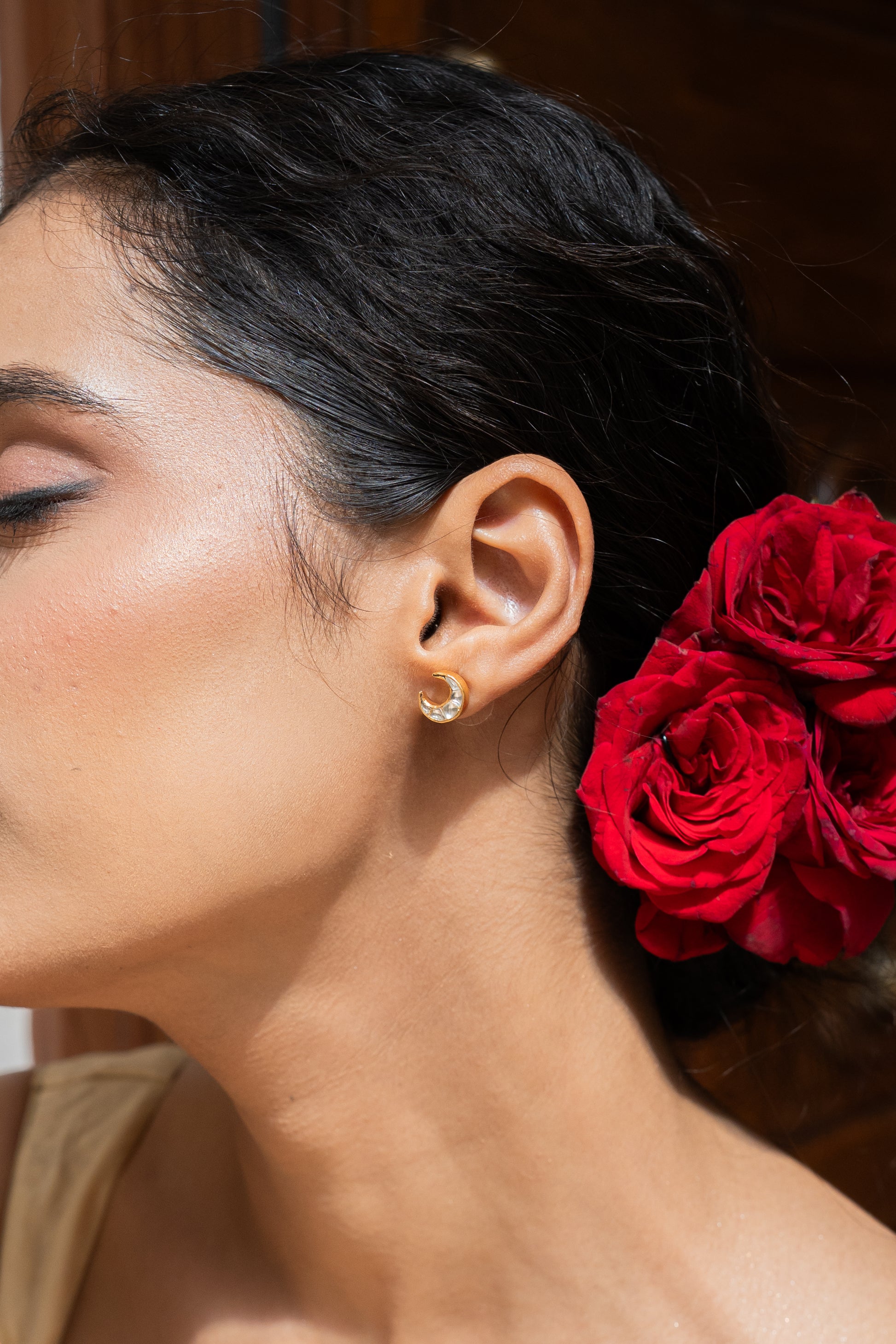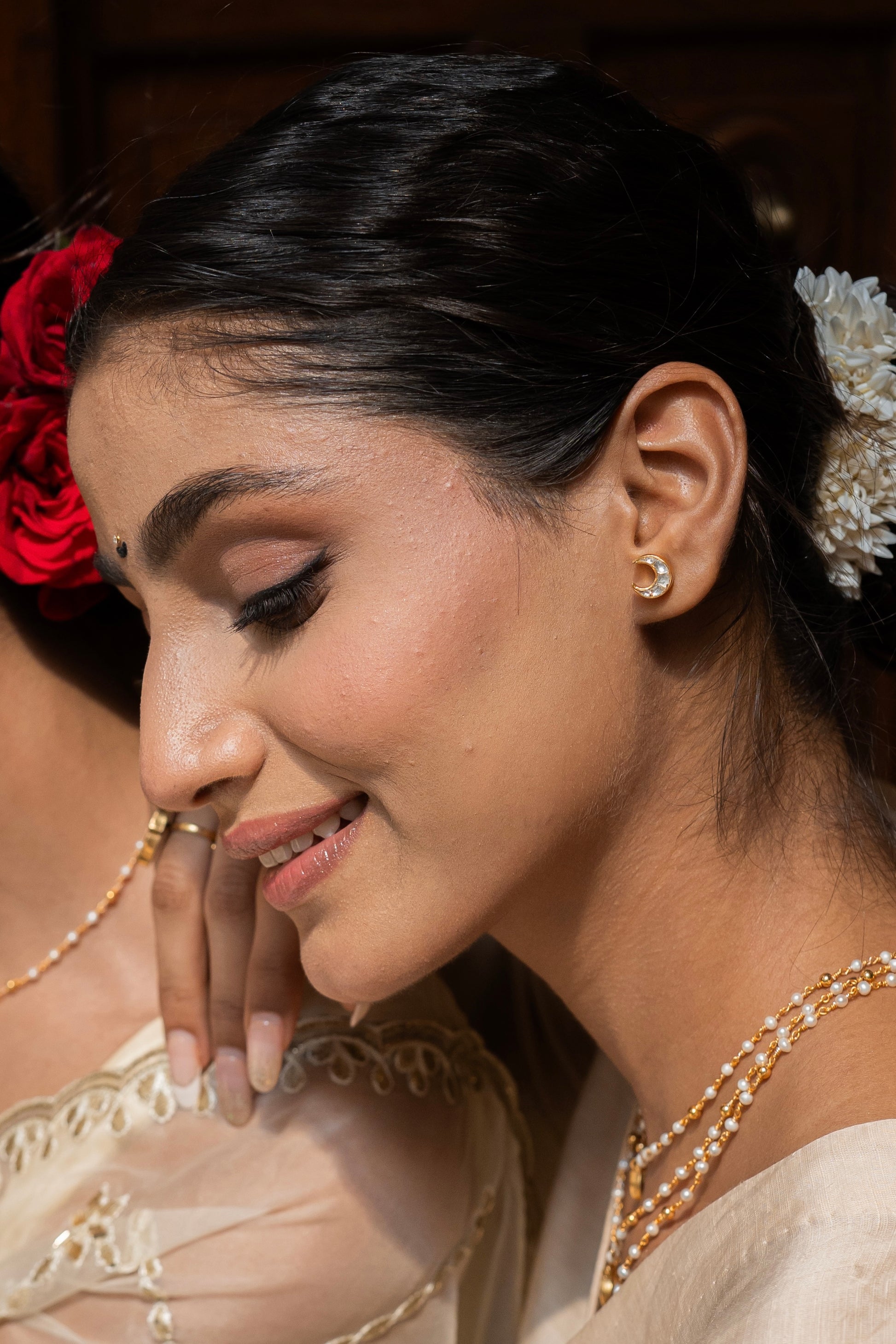 These handcrafted Crescent Moon Silver Earrings bring a touch of celestial elegance to your jewellery box. Designed as delicate stud earrings in the shape of a crescent moon, they are crafted in 92.5 silver with 24K gold plating. Minimal yet timeless, they make for a versatile piece that can be worn every day or styled as a subtle accent for festive looks.
